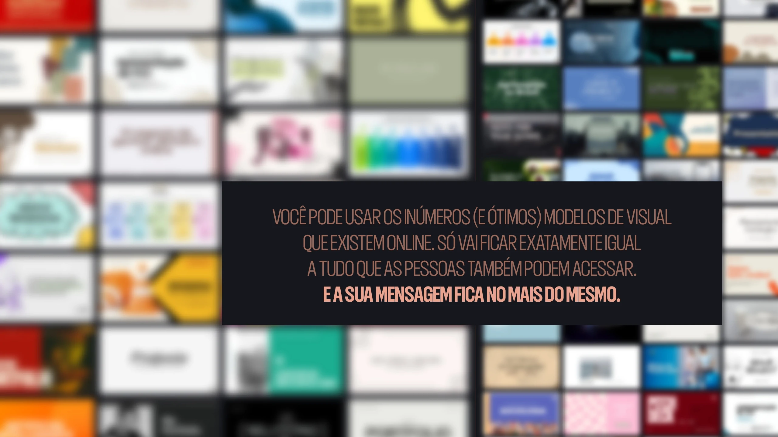 Os slides ficam cheios demais, a estrutura tá esquisita, as imagens todas com aquela carinha de eu-já-vi-isso-em-um-milhão-de-apresentações (ou de “nossa, a ia não fez bonito”)…